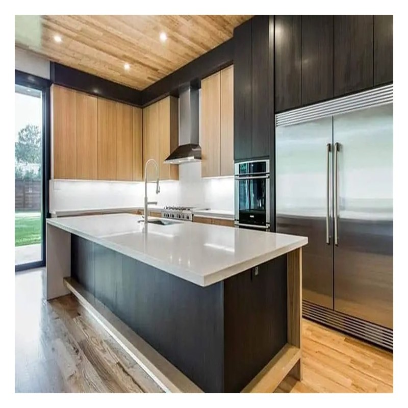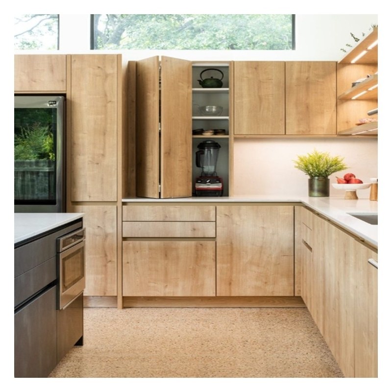 Armarios de cocina de madera sólida de estilo europeo minimalista con material de carcasa de madera contrachapada 21