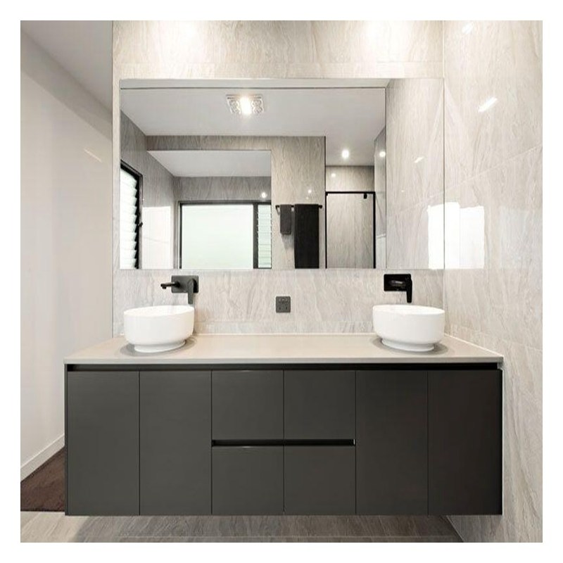 Vanidad de baño elegante y duradera con tratamiento de superficie de paneles de puertas de laca 11