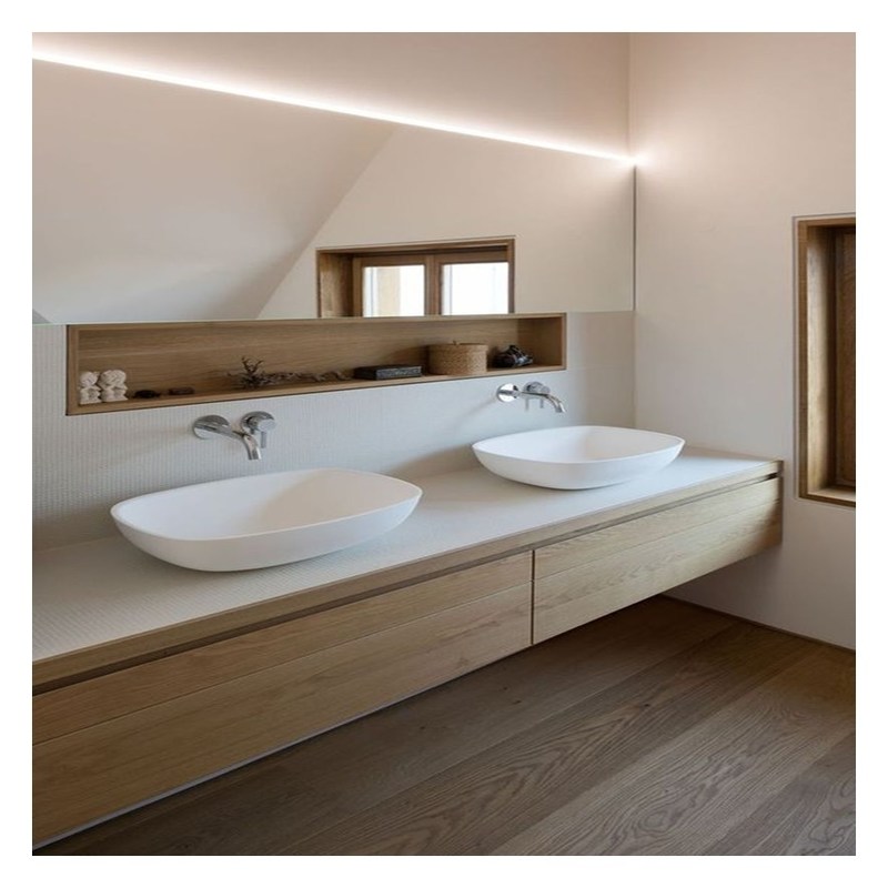 72 pulgadas Rectángulo Superficie sólida Cubo de baño de doble fregadero Vanidad con personalización 23