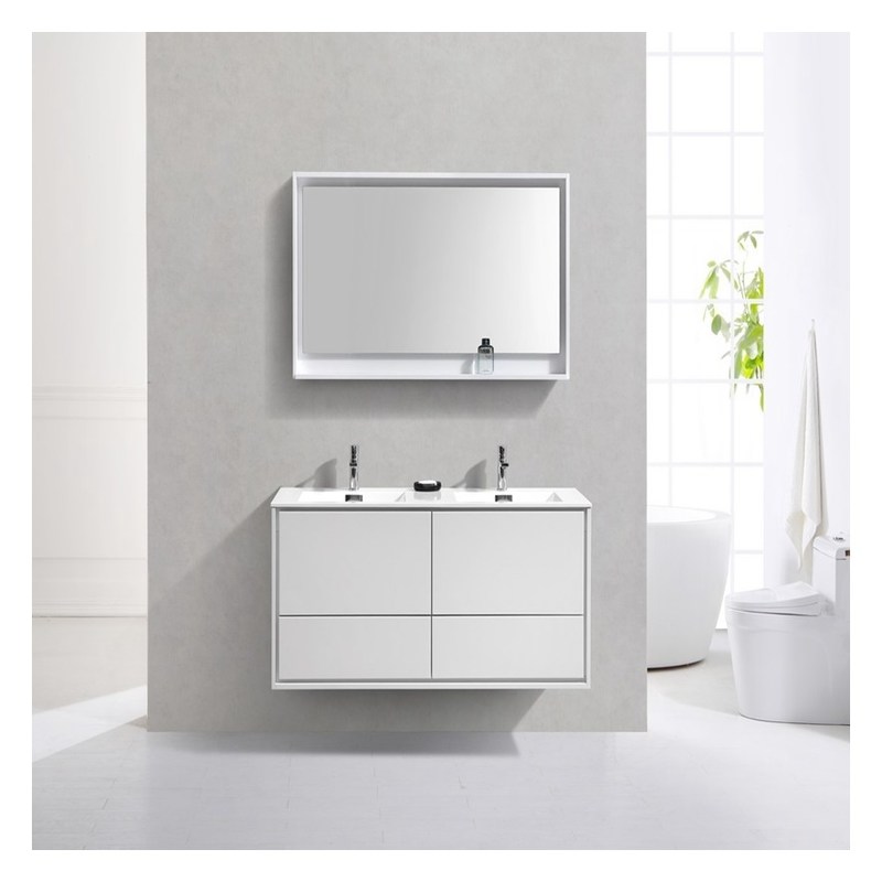 Vanidad de baño de apartamento con acabado brillante personalizado y panel de puerta de laca 7