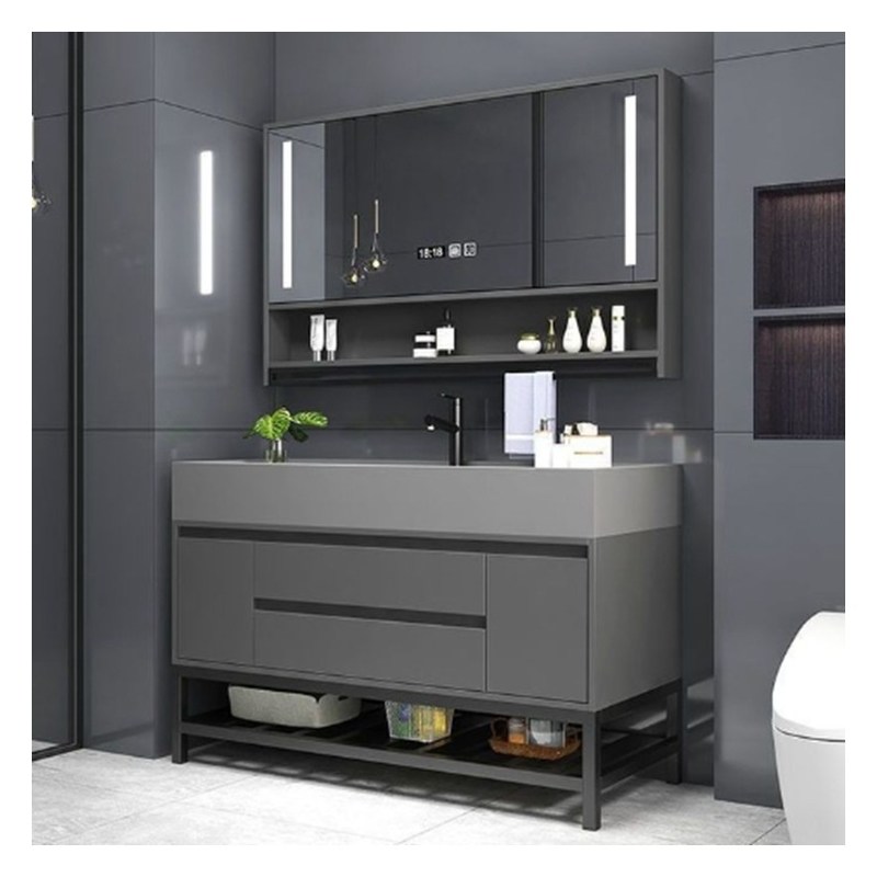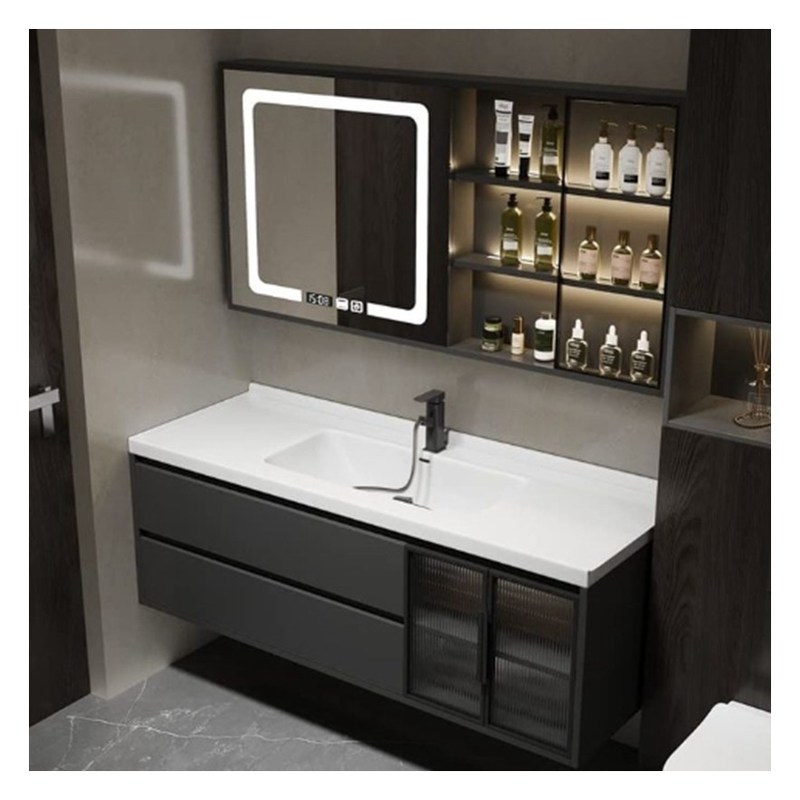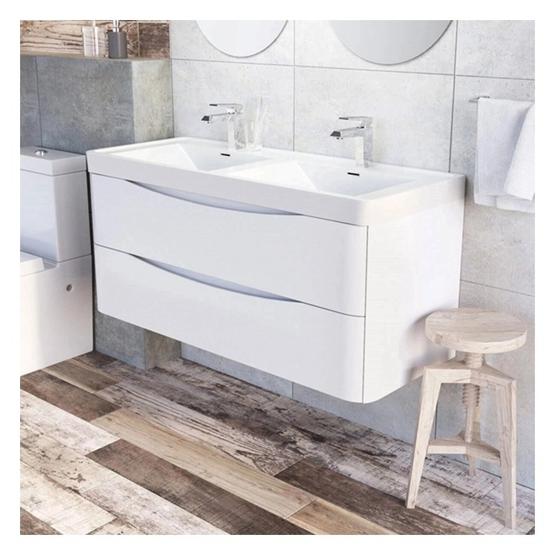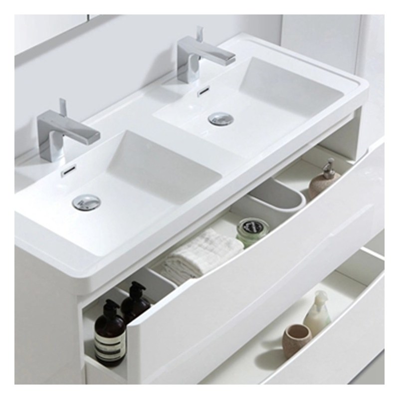 Vanidad de baño de apartamento con acabado brillante personalizado y panel de puerta de laca 0