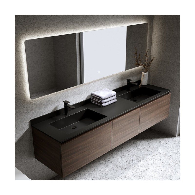 Vanidad de baño de doble fregadero de estilo moderno de madera con ancho y rectángulo personalizados 9