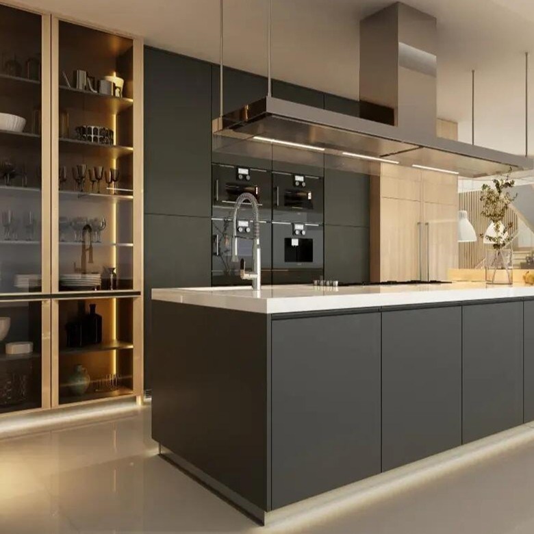 A1: ¿Qué es esto?Si ya tienes planes de diseño de gabinetes de cocina, puedes enviárnoslos. Si no, dame el diseño de la cocina y dinos el estilo y el material que prefieras, entonces podemos diseñar para ti.