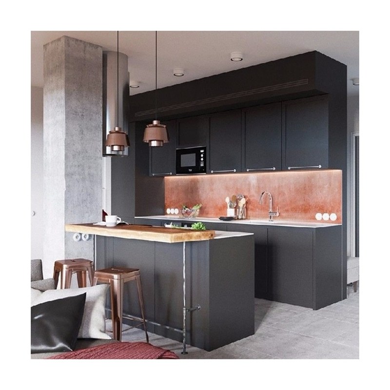 Cocina negra modular de estilo japonés con material de puerta de mesa de melamina 0