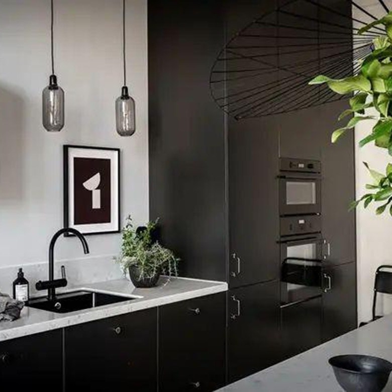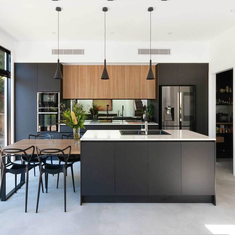 Cocina negra modular de estilo japonés con material de puerta de mesa de melamina