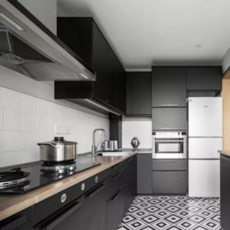 Cocina negra modular de estilo japonés con material de puerta de mesa de melamina 19